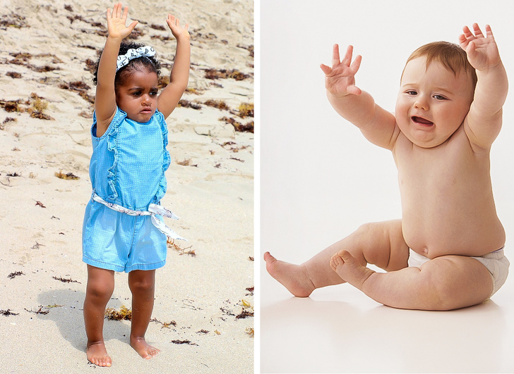 Батьки можуть подумати, що малюк їх відштовхує, адже в цей момент у нього може бути сумний вигляд. Але все навпаки: дитина оголює свої долоні в знак довіри і смирення, а нахил голови — ознака дружелюбності.