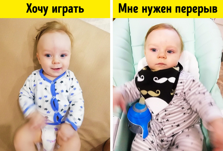 - Буває, що дитині хочеться побути одному. Тоді він буде відводити від вас погляд або намагатися дивитися вниз, перестане реагувати на брязкальця, може брати їх в руки і викидати.
