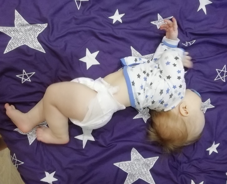 - Якщо малюк лежить на боці і сильно закидає голову назад, то йому не вистачає сну. Намагайтеся продовжувати його сон і укладати раніше. Діти часто приймають таке положення під час кольок: животик болить та постійно будить малюка, з-за цього він не висипається. Але якщо дитина спить так постійно, то це привід звернутися до невролога.