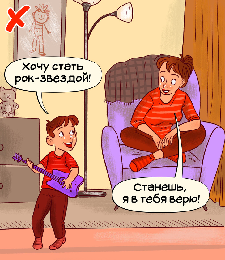 Навіть якщо ви говорите такі фрази з найкращих спонукань, идеализирование дитини може мати негативні наслідки для його самооцінки. Це призводить до того, що діти не наважуються пробувати себе в чомусь новому, боячись, що зазнають невдачі і не виправдають очікування батьків.