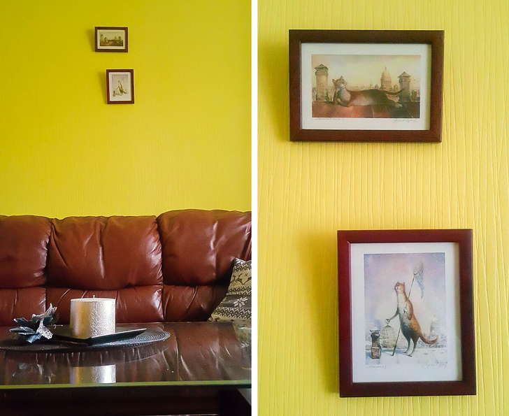 Здається, немає нічого складного в тому, щоб забити в стіну цвях і повісити картину або фотографію в рамці. Повірте, все не так просто. Якщо не керуватися правилами, можна легко помилитися, і тоді нас підсвідомо буде напружувати начебто гарне і рівно висить твір мистецтва, нам буде здаватися, що він ось-ось впаде.