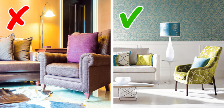 Гарні динамічні візерунки на стінах, меблевої оббивки, подушках і покривалах, килимах та на предметах інтер'єру не тільки роблять кімнату живий, але і стимулюютьт наш сенсорний досвід, приємно «лоскочуть» мозок. Але якщо підсвідомо ми не сприймаємо їх як відповідні один одному, то це невідповідність буде весь час дратувати.