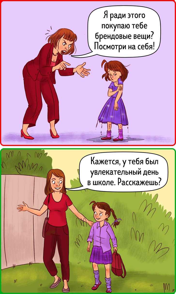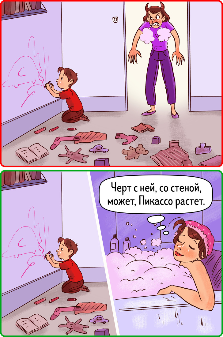 Психолог Катерина Мурашова каже, що сучасні батьки виховують і розважають своїх дітей по максимуму, забуваючи дати їм час побути з самими собою і навчитися займати себе самостійно. Живіть своїм життям. Батько — це не єдина роль, а може бути, навіть не головна.