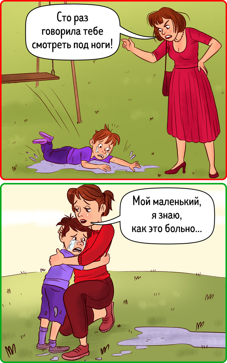 Можливо, у вашому дитинстві, коли ви сердилися, сумували або плакали, ваші батьки не знаходили в собі ресурсу, щоб замість докорів і нотацій просто обійняти і втішити. Але ви можете передати своїм дітям інший взірець поведінки.
