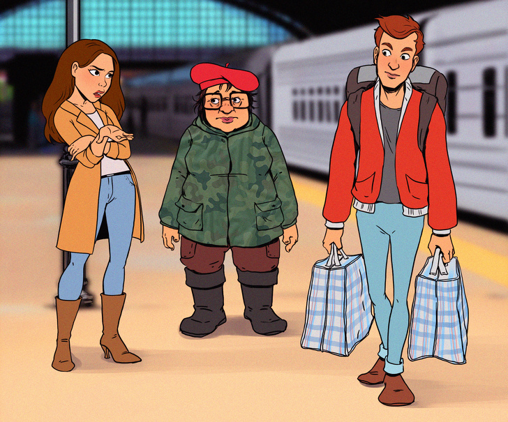 — Радий познайомитися, Олександра Борисівна, — весело відповів Сергій, забираючи у тещі і баули, і рюкзак. — Ого, та чого це ви туди наклали?