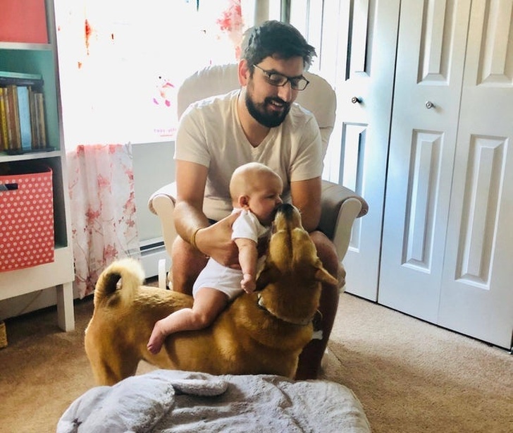 4. «Після 4 років спроб у нас нарешті народилася дитина. Собака теж поза себе від щастя»