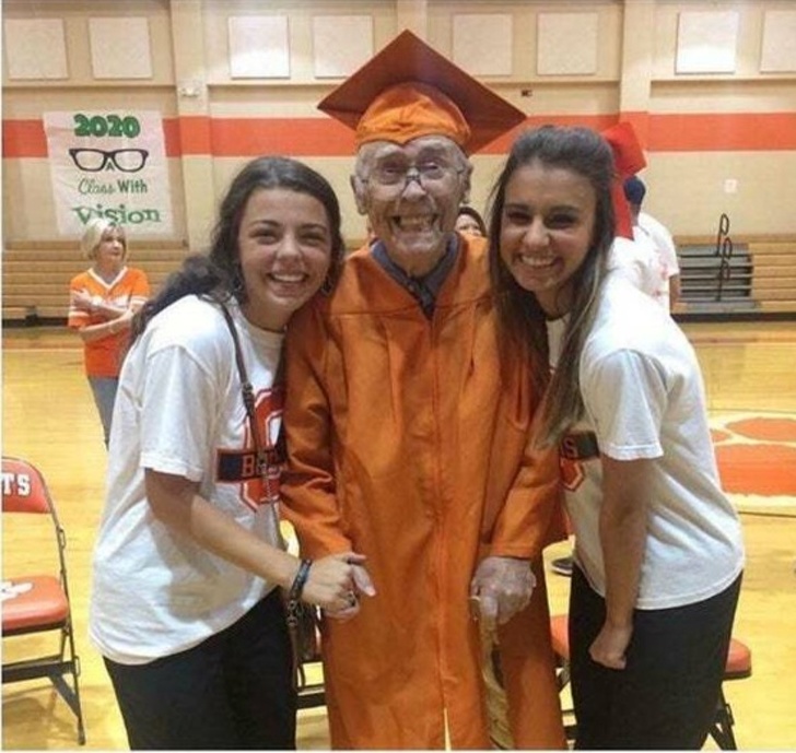 15. «Мій дідусь не закінчив середню школу, тому що його забрали в армію. Сьогодні він отримав диплом»