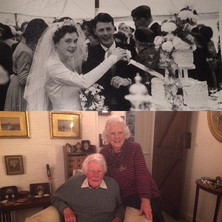 20. «Мої бабуся і дідусь в ніч весілля і 60 років потому»