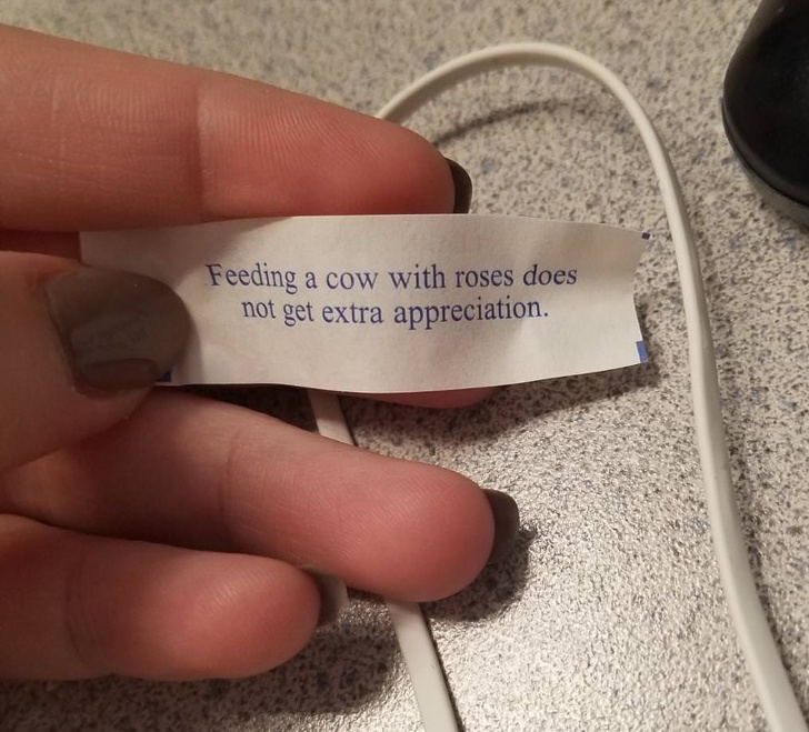 15. «Я підкинув дружині печеньку з передбаченням в контейнер з її обідом. Вона в гніві надіслала це фото. Ніби я сам друкую передбачення і спеціально підсунув саме це»