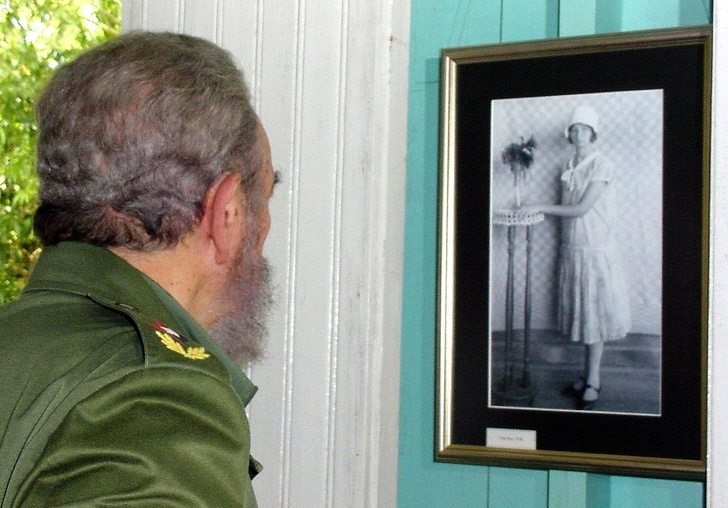 Фідель Кастро дивиться на портрет своєї матері Ліни Руз на виставці на честь 100-річчя з дня її народження