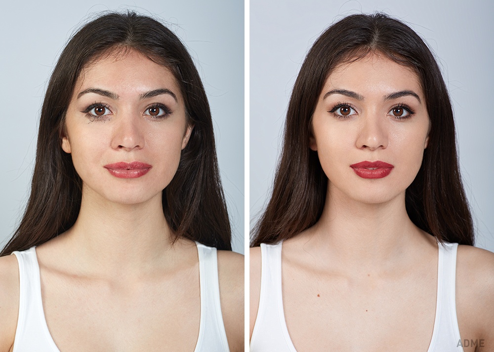 З цього ракурсу очі, нафарбовані дорогою і дешевою косметикою, здається, неможливо відрізнити. На наш погляд, перший макіяж сильно програє другого в основному за рахунок нещільного тонального крему, з-за якого весь макіяж здається трохи «брудним».