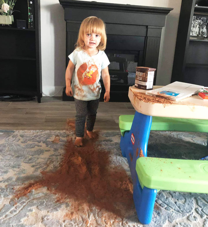 Маленькі діти приносять не тільки щастя і радість, але і купу клопотів. Адже за безпосередності і дикого цікавості вони можуть розревітися з приводу заборони є бруд, залізти в свіжий бетон, розмалювати маркером все, що бачать перед очима. І цими не завжди кумедними витівками вони здатні довести батьків до сказу. Але ті, у кого нерви зроблені із сталі, відносяться до таких витівок з гумором.