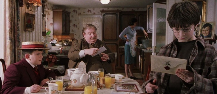 Вражений вторгненням магії в їх розмірене життя Вернон відвозить всю сім'ю в глушині та годує чіпсами з бананами на вечерю? Петунія ніяк не натякає на своє невдоволення.