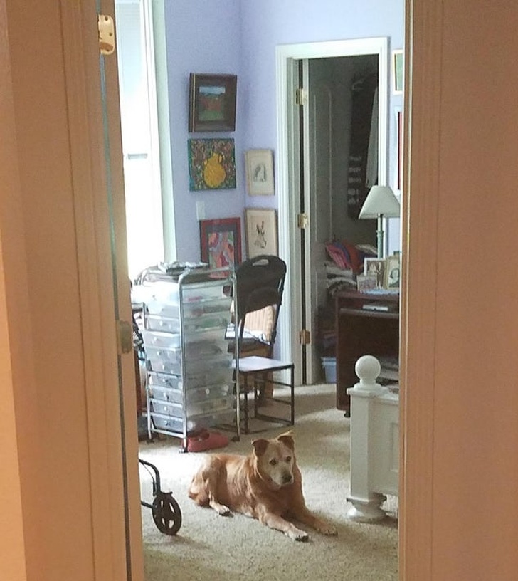 «Бабуся дружини померла вчора в цій кімнаті. Мій пес завжди був поруч, коли бабуся чогось боялася або просто відчувала себе самотньо. Він не залишає свій пост, тому що все ще чекає на свою подругу»