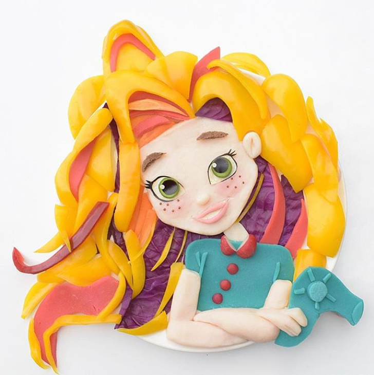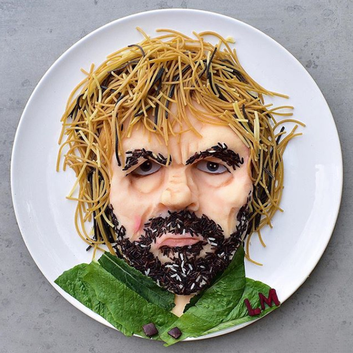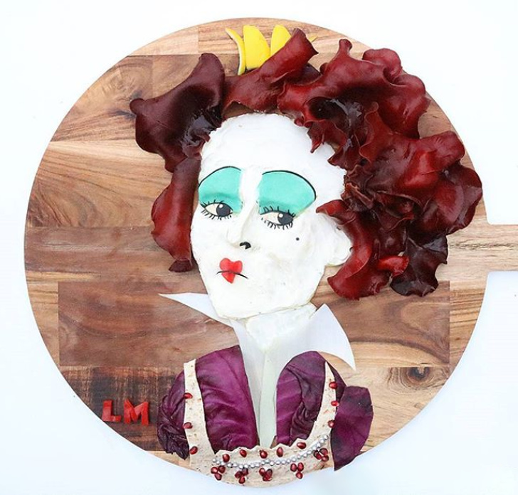 Всі персонажі авторства Мохмеди мало того, що дуже схожі на оригінал, але ще й виконані з корисних продуктів. Наприклад, портрет Хелени Бонем Картер у ролі Червоної Королеви з «Аліси в Країні чудес» зобразив гордовитий характер персонажа в червоній капусті, грибах і вершковому сирі.
