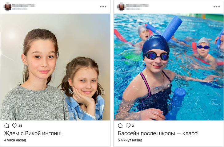 Якщо дитина зранку викладає фото зі школи, в обід — з дому, а після обіду — з басейну, зловмисник без праці простежить його маршрут і незабаром буде точно знати, де і коли найкраще до нього підібратися.