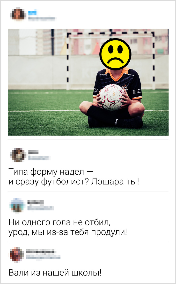 Здавалося б, зовсім невинні дитячі та сімейні фото в соцмережах можуть стати приводом для насмішок. Особливо якщо хтось не так одягнений або відображений в безглуздій позі. Адже познущатися над близькими — найвірніший спосіб зачепити в такому віці. Якщо ваша дитина вразливий і ви точно знаєте, що це його засмутить, порадьте йому не викладати сімейні фотографії в загальний доступ.