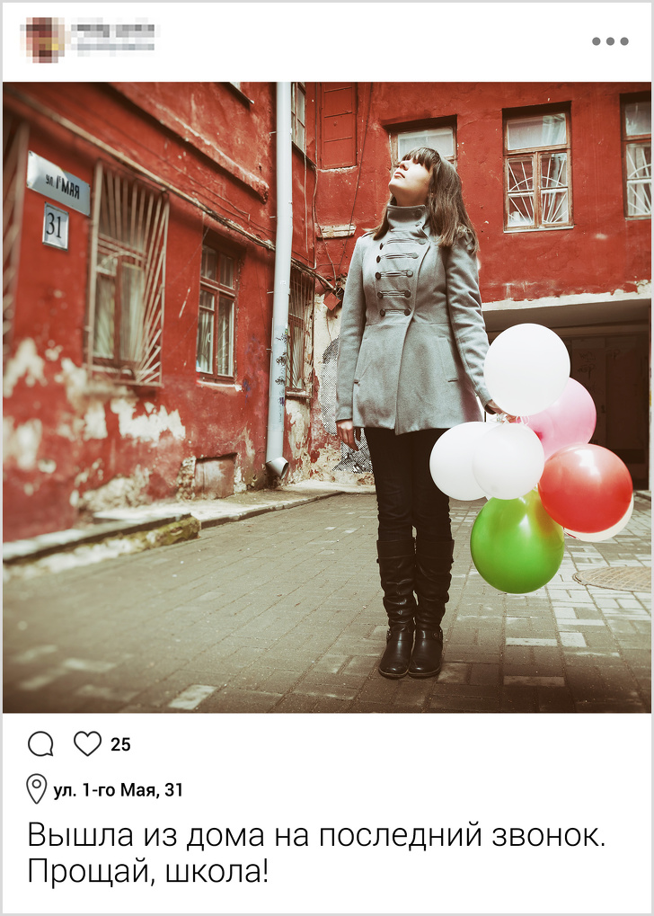 Також місцезнаходження дитини легко може видати геометка або номер будинку, що потрапив в кадр з підписом «Гуляю у дворі». Функцію визначення місцезнаходження на смартфоні краще відключити, а якщо дитина хоче десь відзначитися, то краще робити це в режимі «Для друзів».