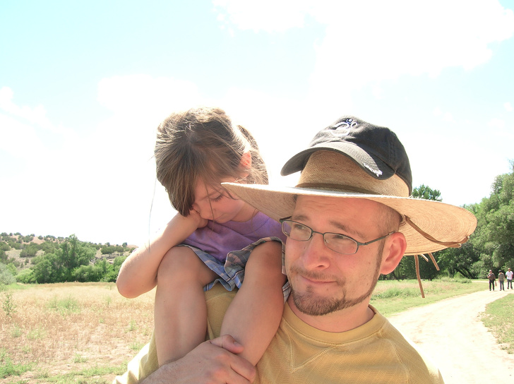 А у тата на плечі дуже зручно спати, в тому числі і сидячи