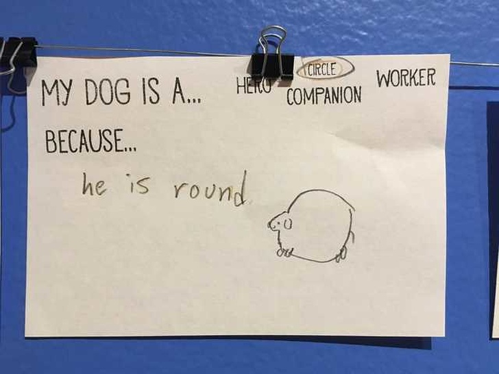 «Мій пес... герой, компаньйон, працівник (обведи потрібний варіант). Тому що... він круглий».