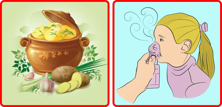 Їх роблять за допомогою інгаляторів чи підручних засобів. Принцип такий інгаляції — дія гарячої пари. Однак чим молодша дитина, тим вона небезпечніша. По-перше, великий ризик опіку як дихальних шляхів, так і тіла: каструля або тазик можуть легко перекинутися на маленького пацієнта.