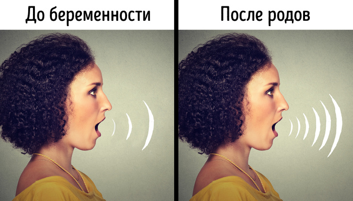 У жінки, яка народила дитину, змінюється голос — він стає нижче і монотоннее. До такого висновку прийшли вчені Сассекського університету. Через рік після пологів голос повертається до своєї колишньої частоті.