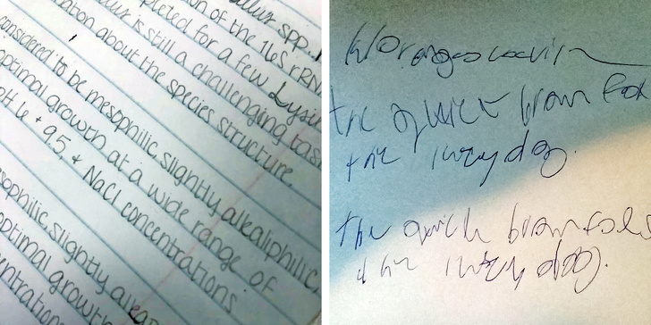 Праворуч: почерк людини, якій тільки що діагностували дисграфию.