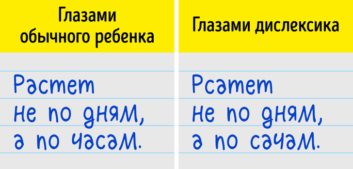- У важких випадках дитина говорить так само неправильно, як і пише. Скажімо, слово «заяс» («заєць»), написаний таким способом, в мові буде звучати так само.