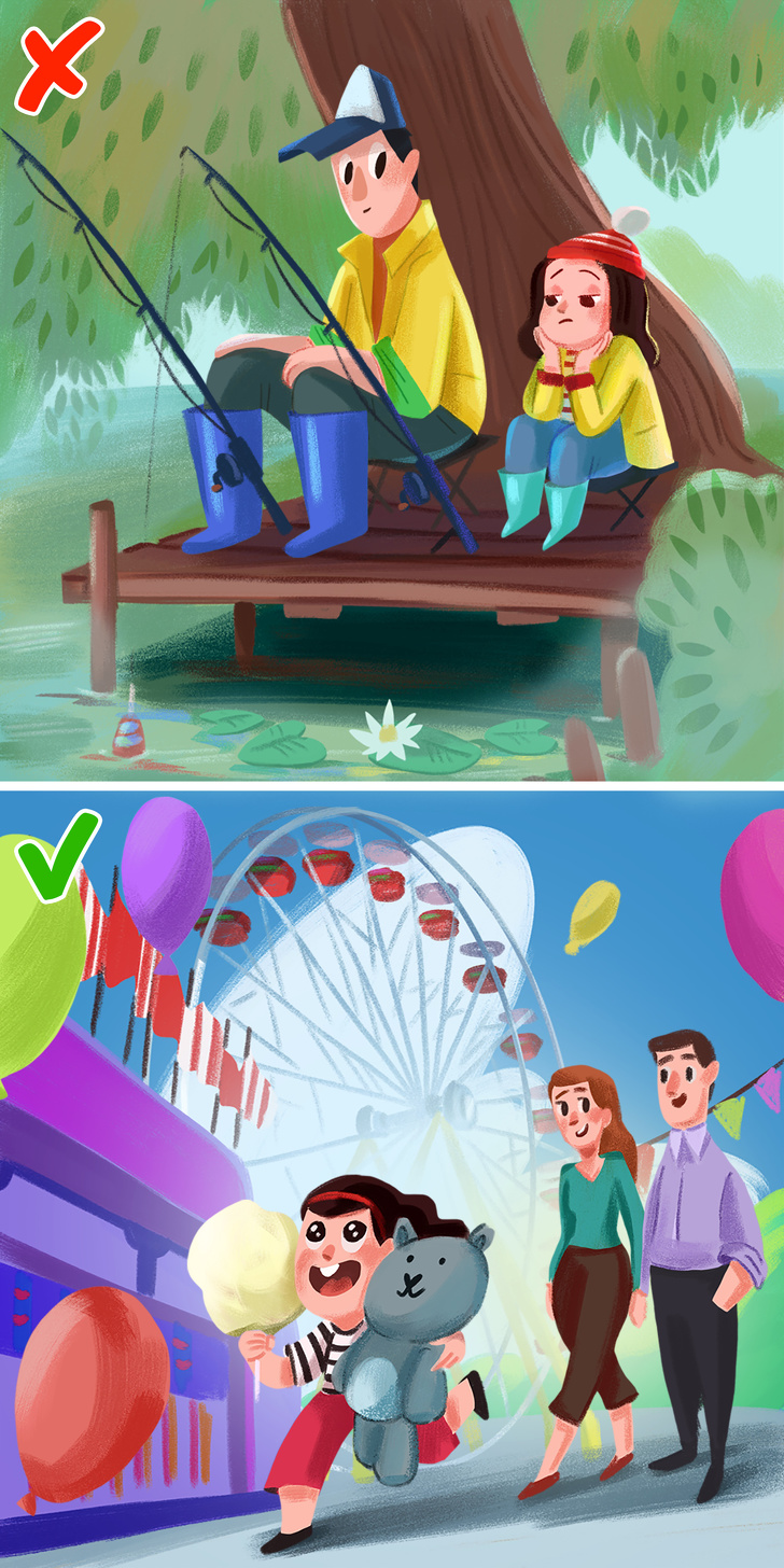 - Частіше цікавтеся, як би вона хотіла проводити час з батьками. Можливо, похід в ліс з наметами не викличе захоплення, так як дівчинка мріяла відправитися в парк розваг.