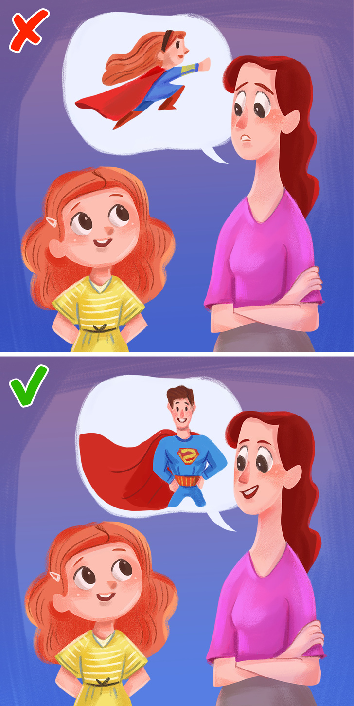 Багато виховують дочок у відповідності зі стереотипами, які нав'язали їм батьки. Вважається, що дівчинка повинна бути милою, господарської і слухняною, так як ці якості допоможуть їй стати гарною дружиною. Але в сучасному світі немає обмежень, домашні обов'язки все частіше розподіляються порівну, а жінка може запросто стати пілотом або космонавтом. Тому батькам варто переглянути свій погляд на усталені традиції і більше довіряти дитині.