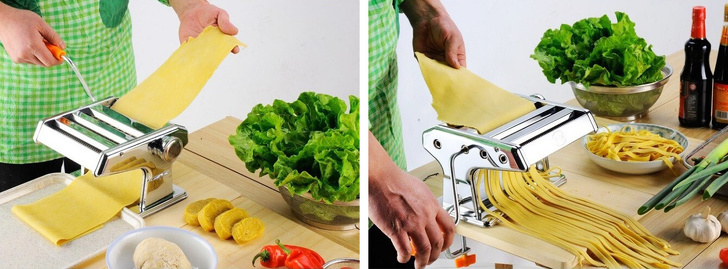 Якщо ви або ваші друзі любите домашні пельмені і локшину, зверніть увагу на цю машинку, яка не тільки дуже тонко раскатает тісто, але і наріже його на локшину — вузьку або ж широку.