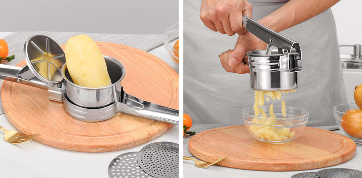 За допомогою цього преса можна за лічені секунди робити ніжне пюре з картоплі та інших овочів, наприклад цвітної капусти.