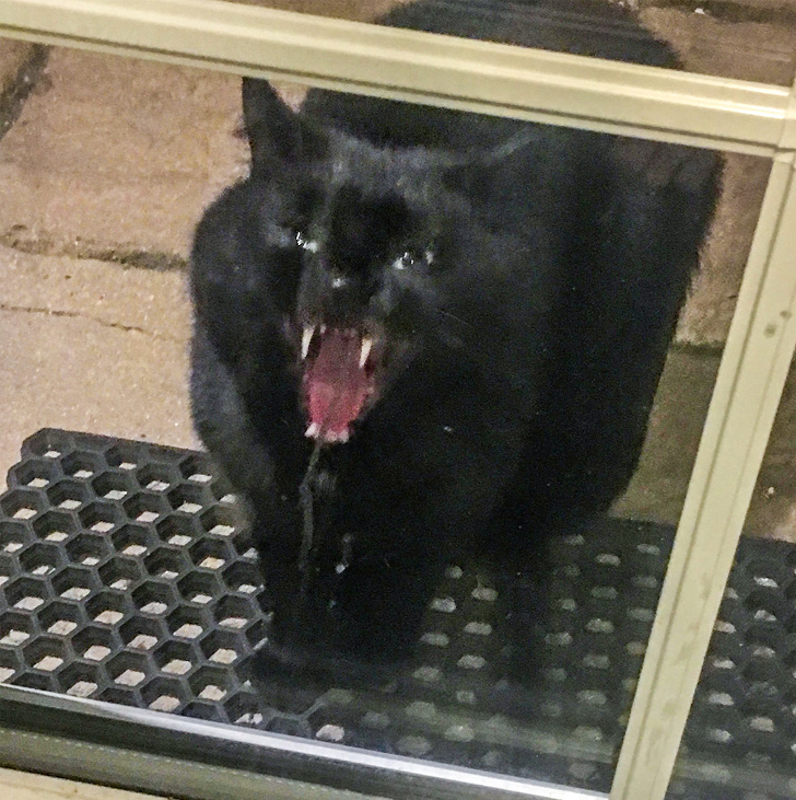 «Цей кіт приходить щовечора до мого дому і кричить на моїх кішок, поки вони їдять. Він виглядає ситим, і у нього є свій будинок»