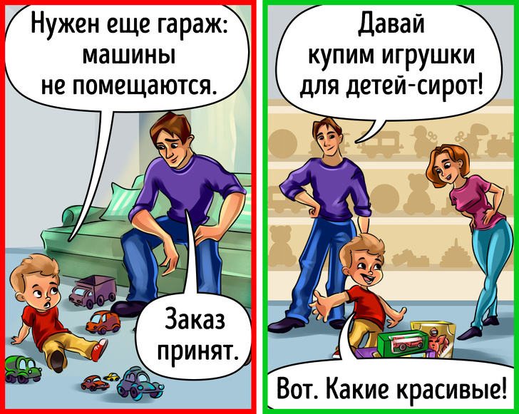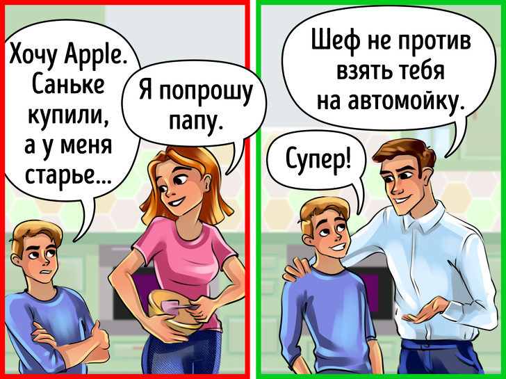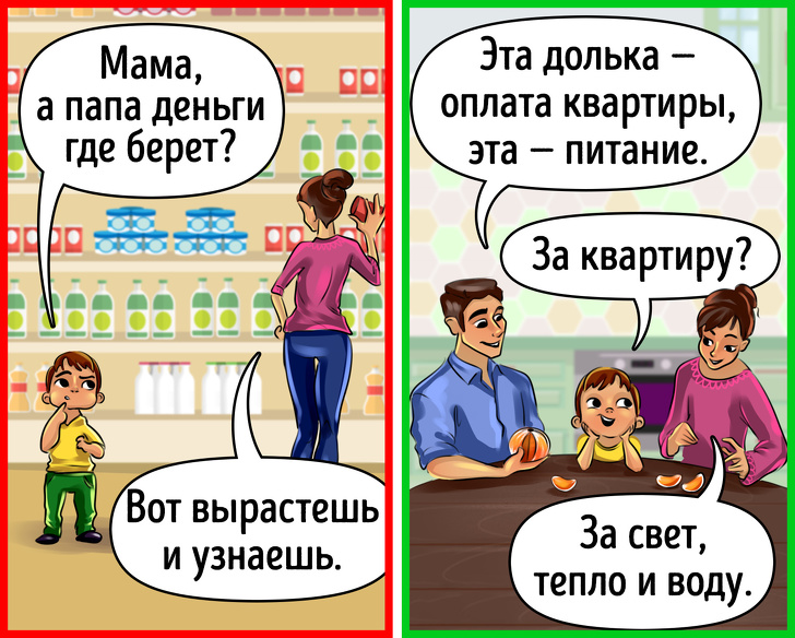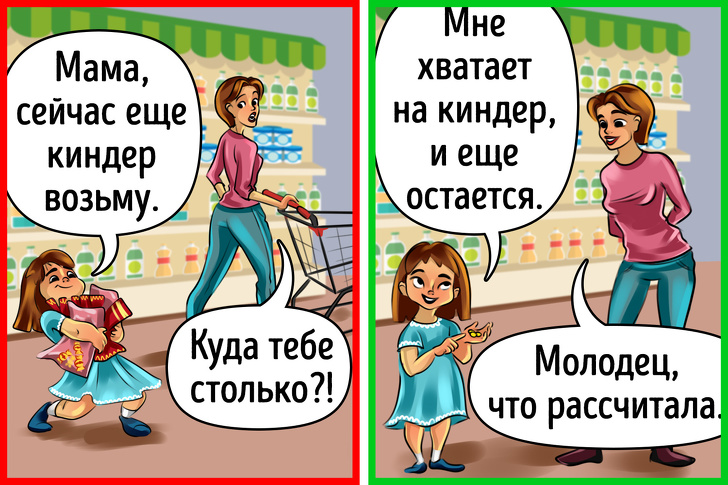 Якщо на кожне прохання дитини щось купити ви реагуєте роздратовано, постійно кажете, що не можете собі дозволити таку річ, оскільки вона надто дорога для вас, то у нього сформується думка, що грошей вічно не вистачає і що вони — найбільша цінність. А ще що мати свої бажання — це погано.