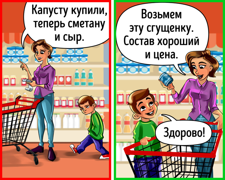 - «Купи сам». Дайте дитині можливість зробити покупки самостійно. Ви можете відправити його за покупками з невеликим списком продуктів, а самі почекати біля каси. Це ще і відмінний спосіб уберегтися від примх в магазині.