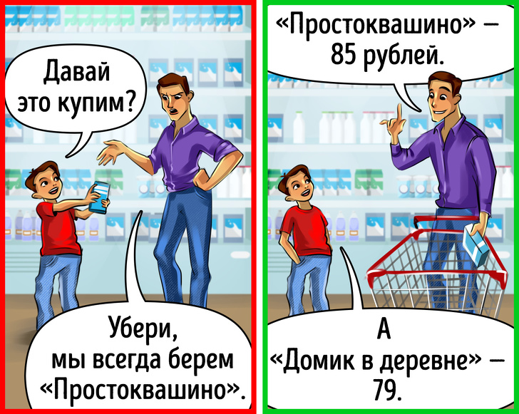 - «Знайди дешевше». Попросіть дитину знайти товар за більш доступною ціною або позмагайтеся, хто це зробить швидше. Такі навички знадобляться в будь-якому віці. Нехай він порівняє, що дорожче — свіжі фрукти або компот? А чому одні товари дорожче, а інші дешевше? Обговоріть це.