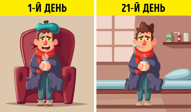 Залишковий кашель і нежить можуть зберігатися до 4 тижнів, тому немає сенсу чекати, поки зникнуть абсолютно всі ознаки хвороби. Якщо ви відчуваєте себе добре, то можете повернутися до звичного способу життя.