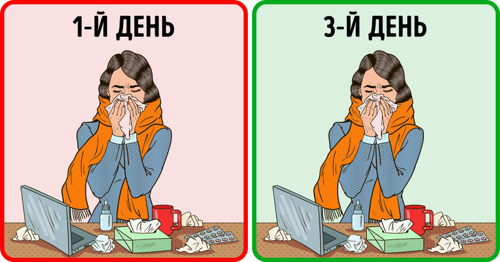 Багато хто звик героїчно переживати пік застуди на своєму робочому місці. І навіть існує думка, що якщо не давати собі розслаблятися, то хвороба пройде швидше. Насправді ж процес одужання тільки затягується. Найоптимальніший варіант: побути вдома перші 1-2 дні, а потім вже повернутися на роботу. У тому випадку, якщо ви раптом переплутали застуду з грипом, вам вдасться уникнути серйозних ускладнень. Ще одна причина залишитися вдома: у перші дні захворювання людина є носієм вірусу і може інфікувати інших людей.