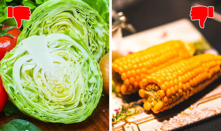 Кукурудза і капуста викликають газоутворення, що призводить до кольок у малюка. Цих продуктів краще уникати до 1-1,5 років. А потім вводити з обережністю, оскільки, наприклад, кукурудза досить сильний алерген.