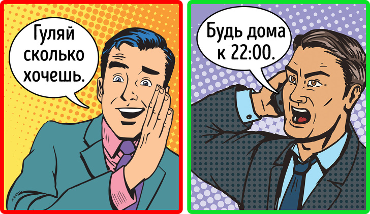 Насправді: усі батьки хочуть, щоб діти любили і поважали їх, тому часто намагаються звести строгість до мінімуму. Однак така тактика призводить до зворотного результату: чадо зовсім відбивається від рук. Батьки не повинні бути друзями дітям, їх головна роль — це виховання. А для цього важливо не тільки встановлювати чіткі межі допустимого поведінки, але і дотримуватися їх. Справа в тому, що дорослим легше сказати «так», ніж «ні» і закрити очі на погану поведінку дитини. По-справжньому хороші батьки авторитетні, але не авторитарні. До такого ідеалу і слід прагнути.