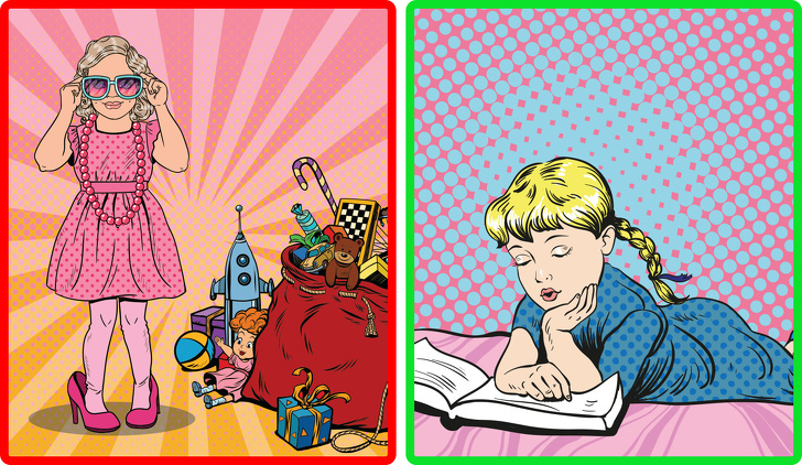 Насправді: згідно з недавніми дослідженнями, діти, у яких було багато іграшок, не змогли зосередитися ні на одній з них. Психологи попереджають, що діти, яких батьки буквально закидають іграшками, втрачають здатність грати правильно, адже їх увага розсіюється. Любов батьків не повинна виражатися в матеріальних цінностях, набагато важливіше емоційний зв'язок з дитиною. А замінювати дорогими подарунками виконання своїх батьківських обов'язків — дійсно погана ідея.