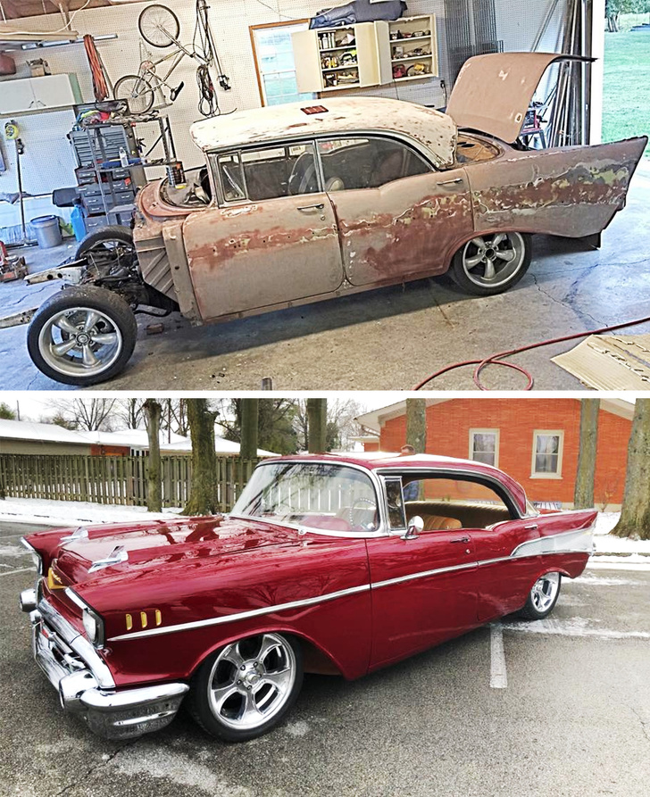 Автомобіль Chevrolet Bel Air 1957 в свій час вважався найдорожчою моделлю Chevrolet, однак за 30 років простою в гаражі Фреда він перетворився на іржаву руїну. Щоб подарувати йому нове життя, Кэму довелося потрудитися. Він декілька років відкладав гроші, а коли зрозумів, що зібраної суми все ще не вистачає, продав власний автомобіль. Втім, за словами Кема, «воно того варте».