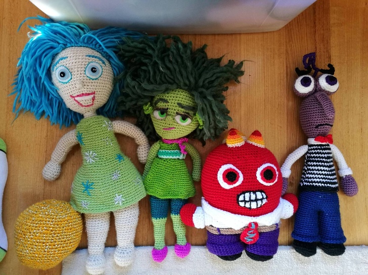 «Моя дочка обожнює мультфільм „Головоломка“, і після того як її бабуся про це дізналася, вона відразу приступила до в'язання її улюблених героїв»