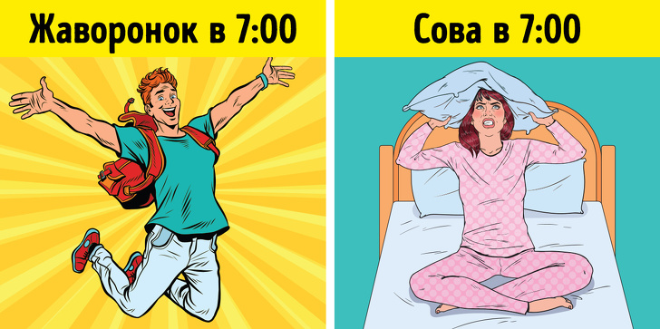 У 70-ті роки ХХ століття науковці як слід розібралися в циркадних ритмах і встановили, що є так звані жайворонки, які прокидаються спозаранку бадьорими і готовими до трудових подвигів, а є сови, які проявляють найбільшу активність вечорами. Як бути, якщо представник групи жайворонків і член групи сов зустрінуться і вирішать створити сім'ю? Адже такий союз може доставляти деякі незручності і навіть бути шкідливим для здоров'я.