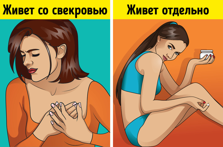 Особливо сильний загострення пристрастей у відносини свекрухи і невістки. Дослідження, проведене аж у 1954 році, показало, що 2/3 свекрух незадоволені дружиною сина, а невістки, навпаки, вороже налаштовані по відношенню до матері чоловіка. А японські вчені встановили, що жінки, які проживають зі свекрухою, частіше стикаються з ішемічною хворобою серця.