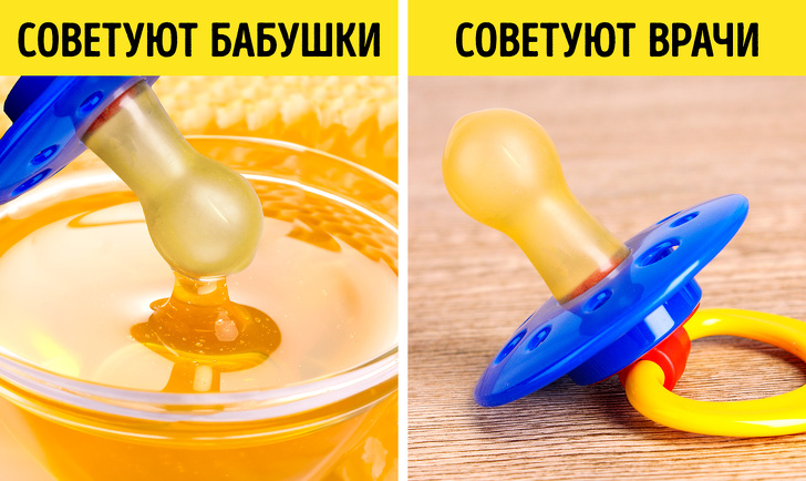 Багато бабусі рекомендують для заспокоєння малюка, що плаче вмочати соску в що-небудь солодке. У якихось країнах радять мед, в якихось- арахісову пасту і згущене молоко. Але педіатри категорично проти таких методів.