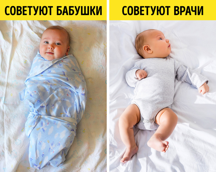 Раніше вважалося, що сповивати немовлят потрібно обов'язково, тому що це допомагає утримувати ноги малюка в прямому положенні. Нібито без цього кістки не будуть прямими і чадо зросте косолапым.