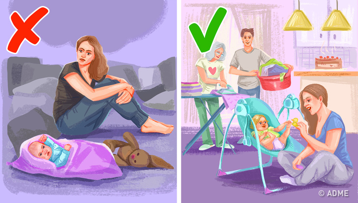 В цілому жінці, яка щойно стала мамою, дуже потрібна допомога рідних і близьких, розуміння з їх боку і підтримка, регулярні прогулянки на свіжому повітрі, повноцінне, збалансоване харчування з урахуванням грудного вигодовування дитини.