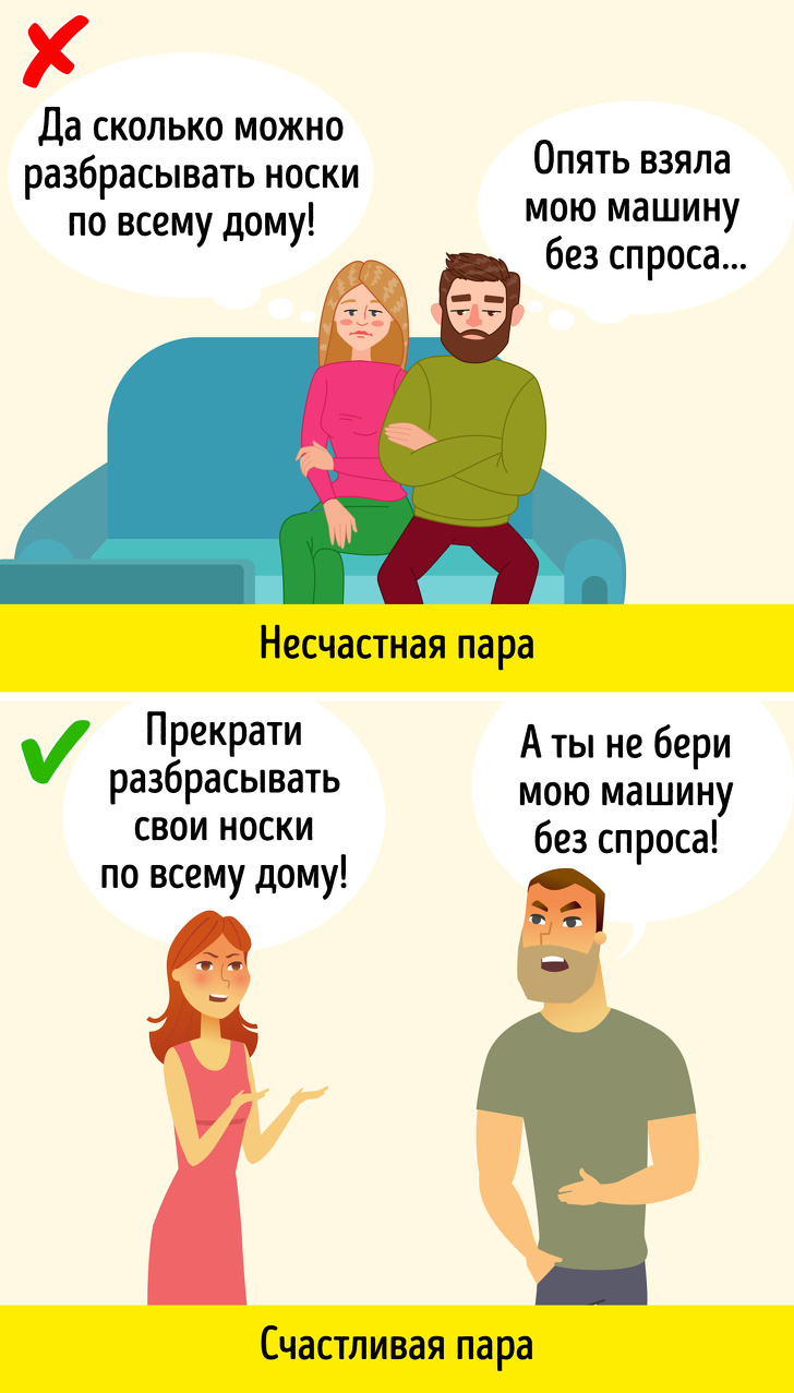 А адже стабільно високий рівень кортизолу з часом може навіть призвести до депресії. Якщо не говорити про проблеми, вони нікуди не подінуться, а будуть накопичуватися і негативно впливати на стосунки. Так що не соромтеся повідомити партнерові, якщо вам щось не до душі. Але говорите саме у справі, не намагаючись спеціально образити людину.