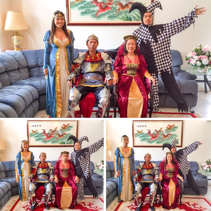 9. «Щорічне сімейне фото. Тато сказав, що буде тільки імператором, тому що він „так записано у мами в телефоні, і взагалі, він же головний в цьому будинку“»